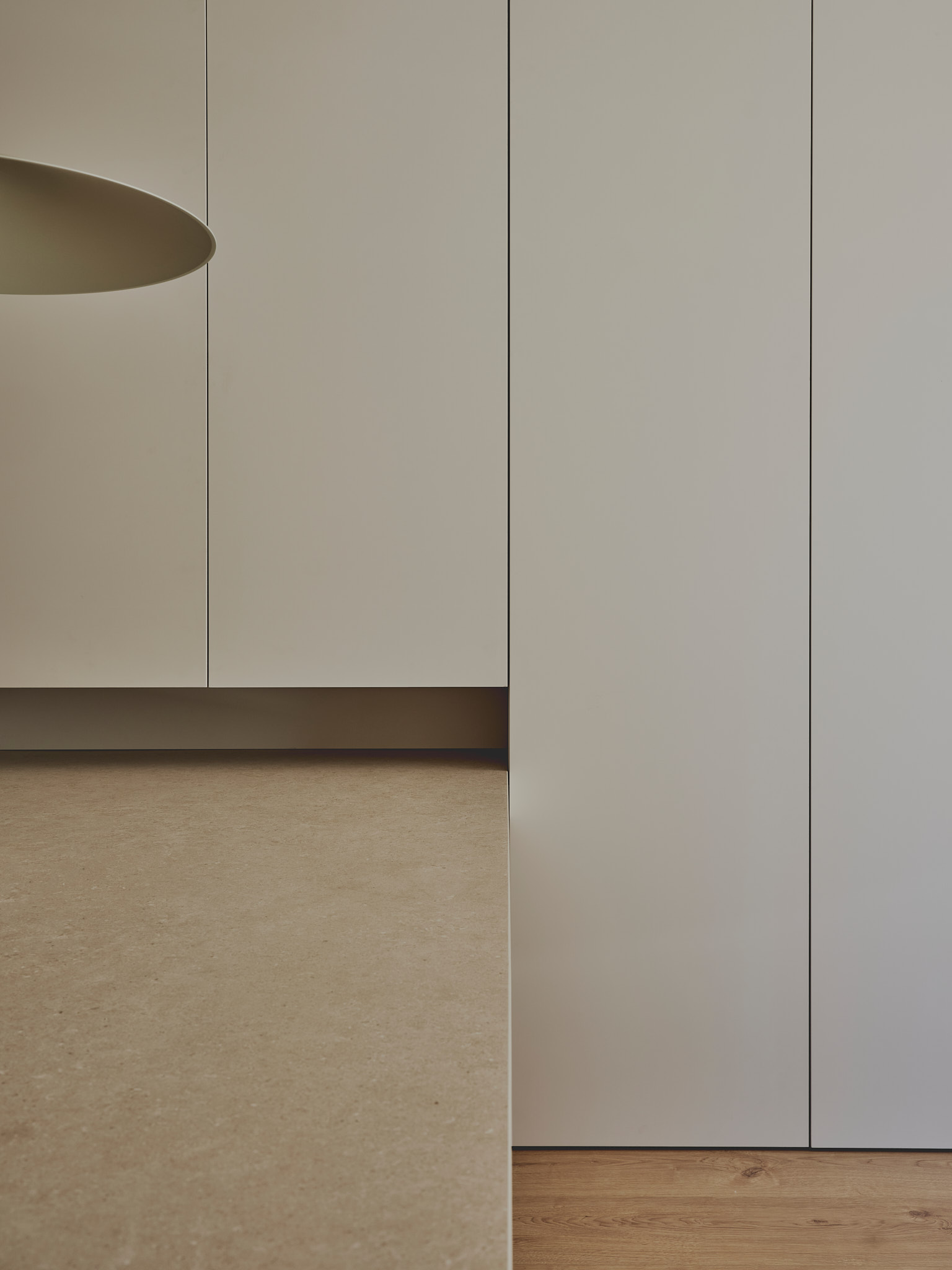 La arcilla en paredes y techos envuelve el espacio con una textura orgánica que invita a la paz, mientras que la madera, el lino y la cerámica local aportan una calidez natural que enriquece cada rincón. Cada mueble, diseñado a medida por nuestro equipo, se integra a la perfección en el entorno, optimizando las áreas de trabajo y creando una atmósfera funcional y estética.