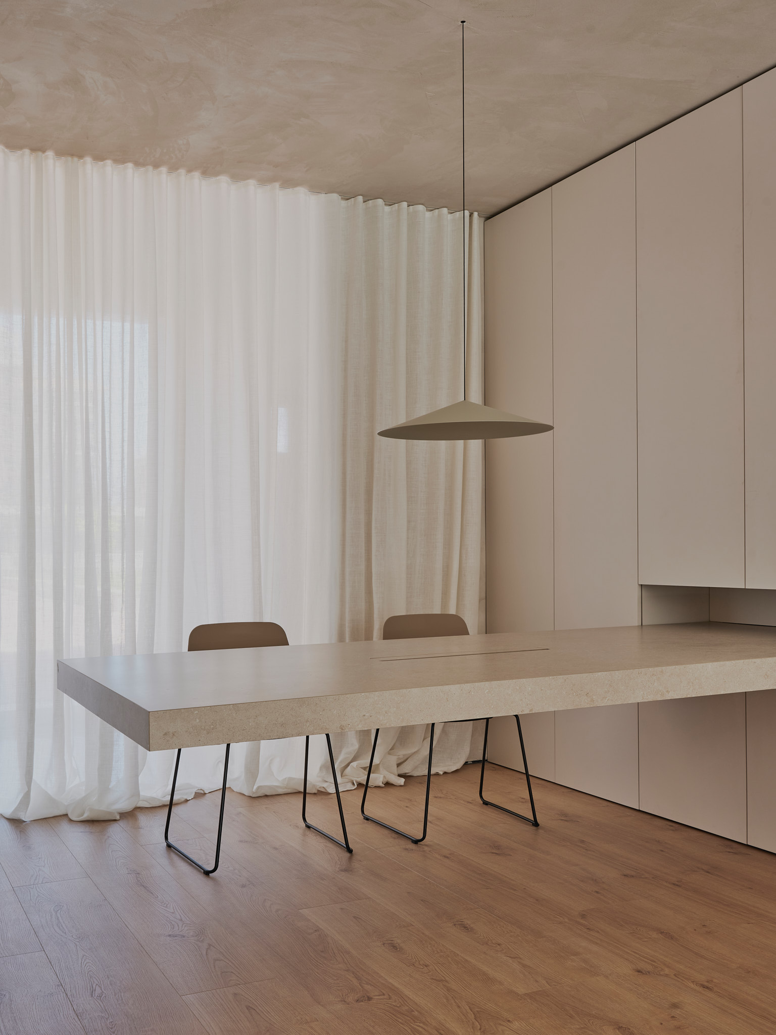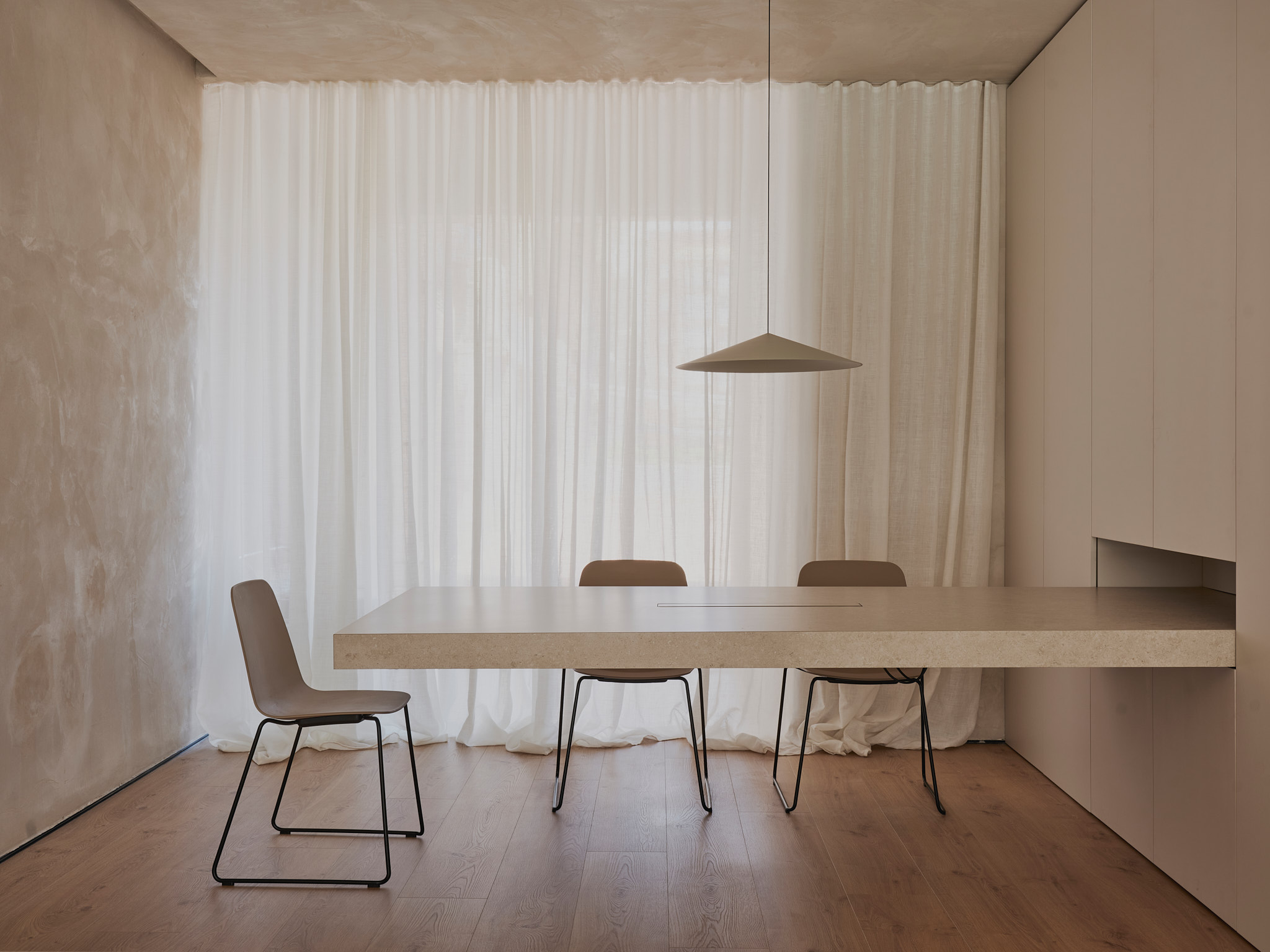 Nuestro estudio de arquitectura ha sido concebido como un refugio de serenidad y creatividad. Este espacio de trabajo minimalista y equilibrado refleja nuestra filosofía de diseño, donde la simplicidad y el uso de materiales naturales se unen para crear un ambiente de concentración y calma.